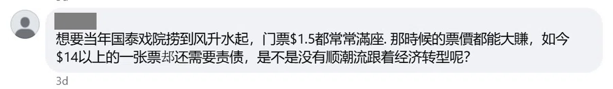 尽管如此,今日的国泰戏院,单就过去两年已关闭了四家戏院,全岛剩余的六家戏院也陷入苦苦挣扎的窘境。对于如此局面,网友纷纷感慨: