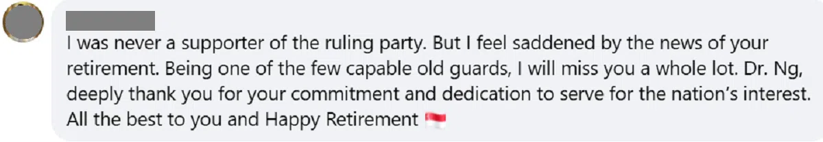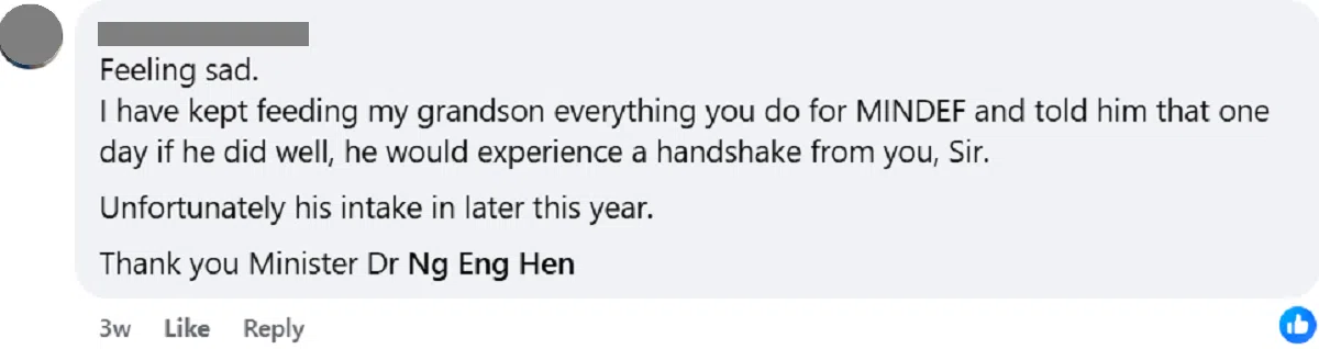还有很多留言是感谢黄永宏对新加坡国防的贡献。其中一条是一名祖母级网民写的。她说她很伤心,因为一直跟孙子分享黄永宏在国防部所做的一切,告诉孙子他如果在服役时表现杰出,应该会有机会和黄部长握手,没想到失之交臂。